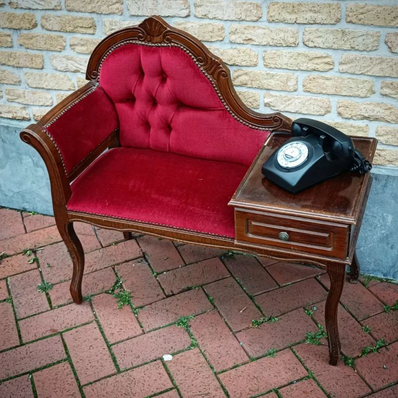 C'est un guéridon sur lequel on pose le téléphone sur lequel on a vissé ou collé une banquette ou une chaise.