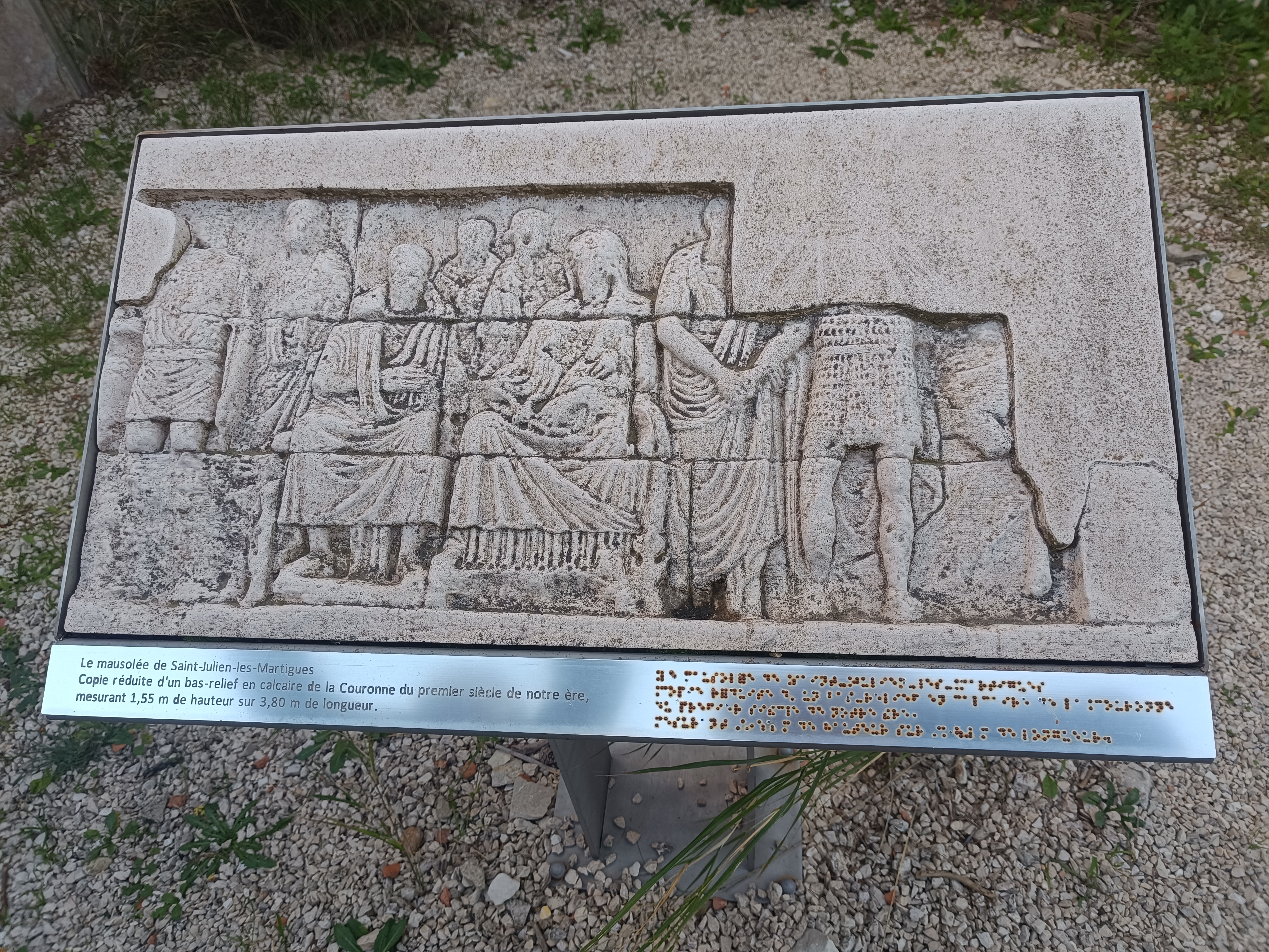 Cette sculpture provient d’un mausolée romain datant du Ier siècle après J.-C., probablement lié à une riche famille locale installée dans la plaine environnante. (3)