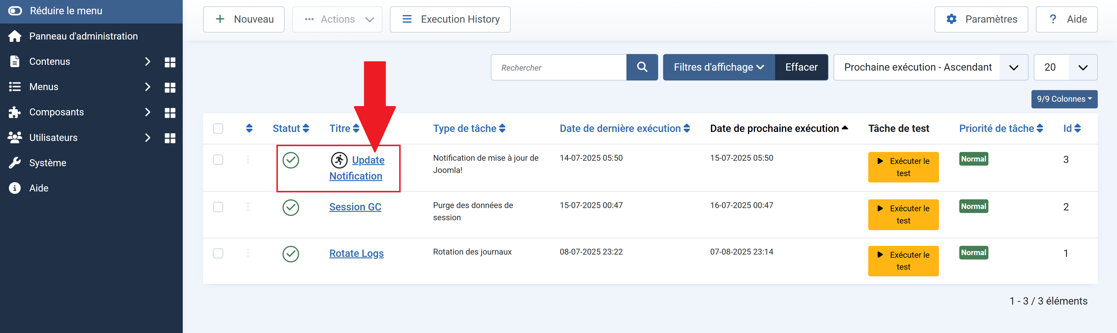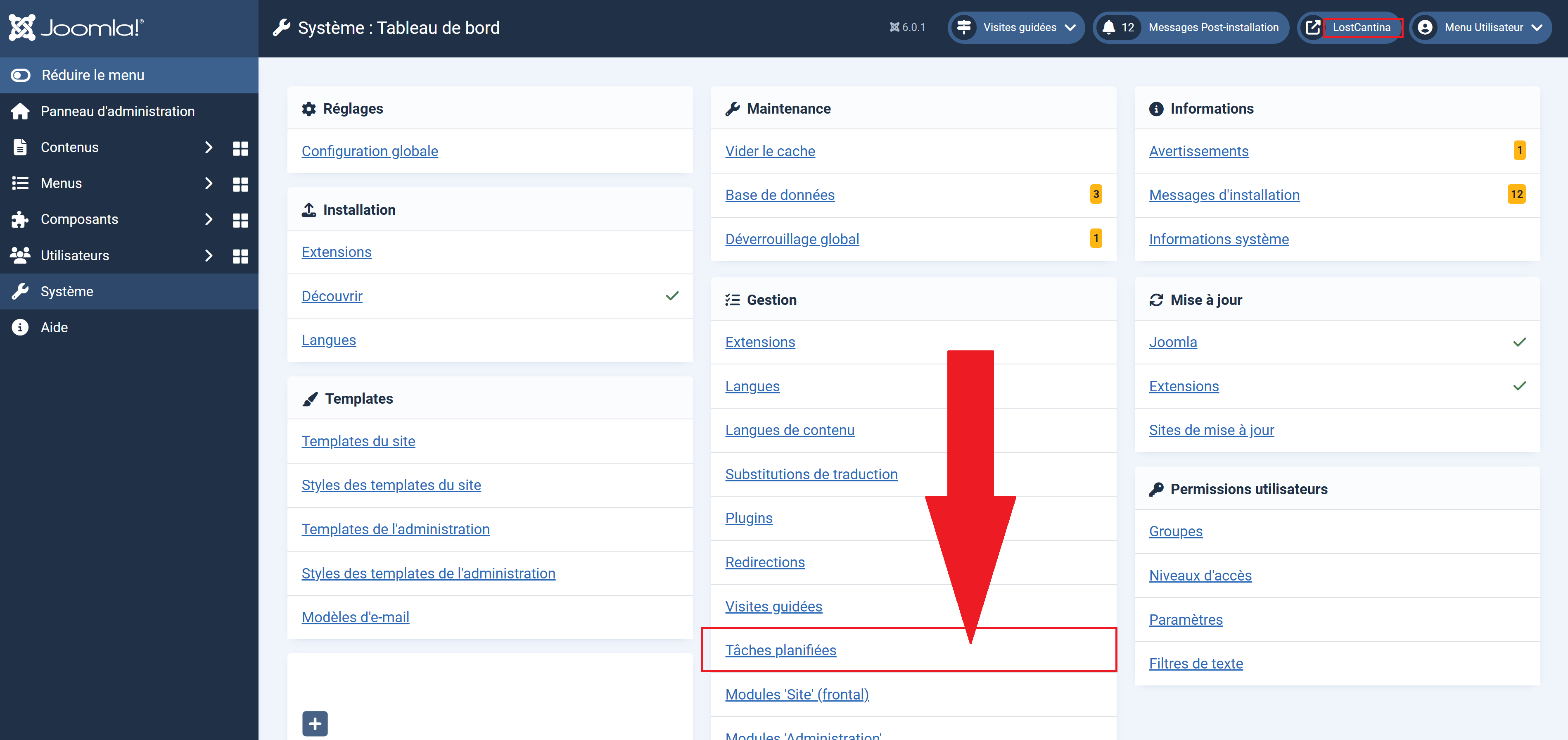 Allez sur "Système" et cliquez sur "Taches Planifiées":