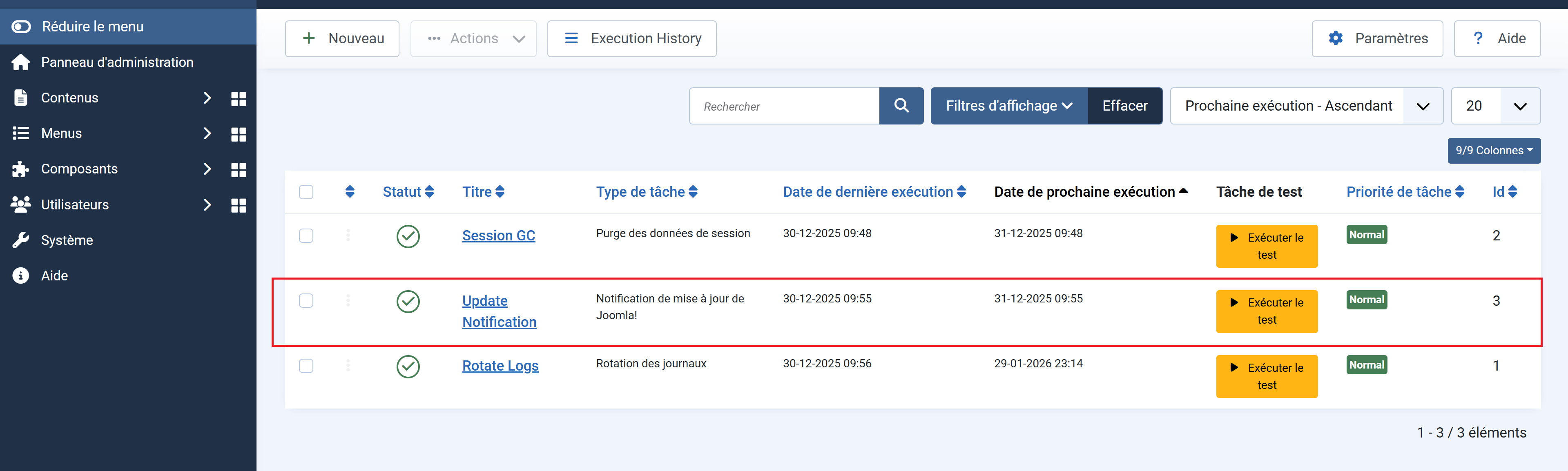 Cliquez sur "Exécuter le test" des trois tâches pour voir si tout est ok, et normalement tout est débloqué..........